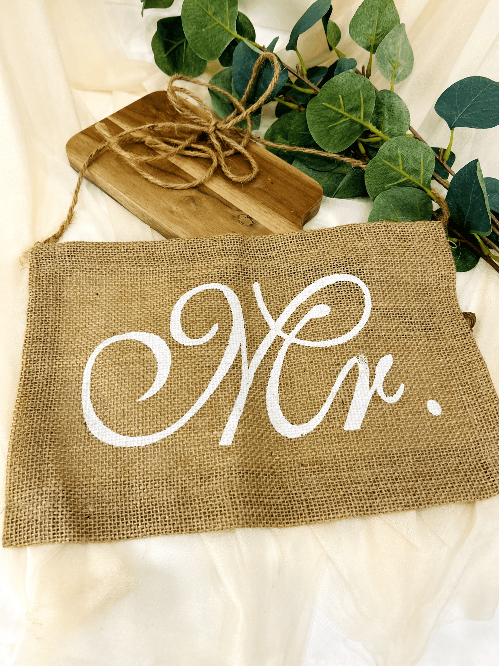 Mr. und Mrs. Jute Schild für Stühle